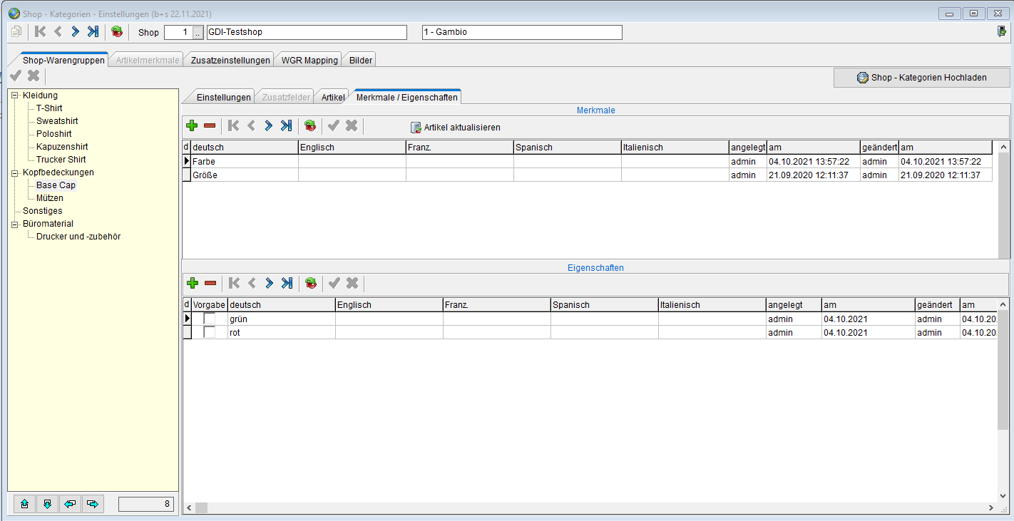 - weitere Kategorien zur Anzeige im Shop