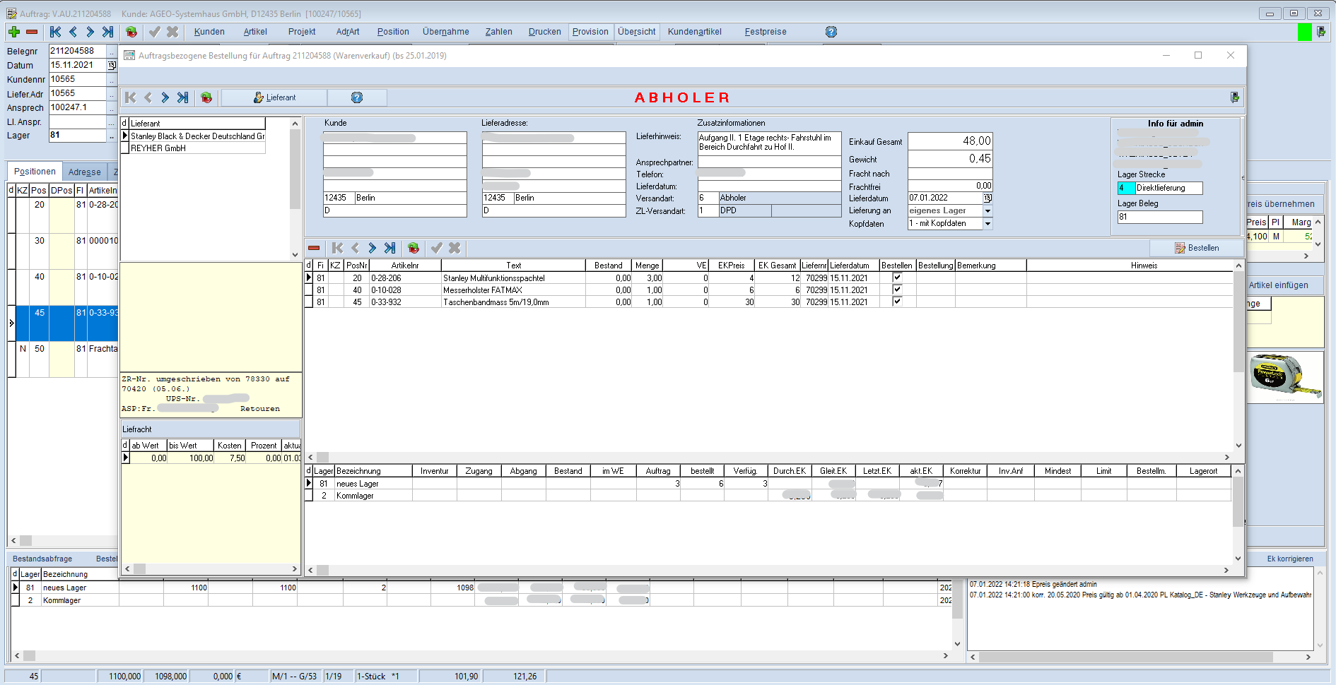 - Auftragskommissionierung mit Mehrlagerverwaltung (Filialen)