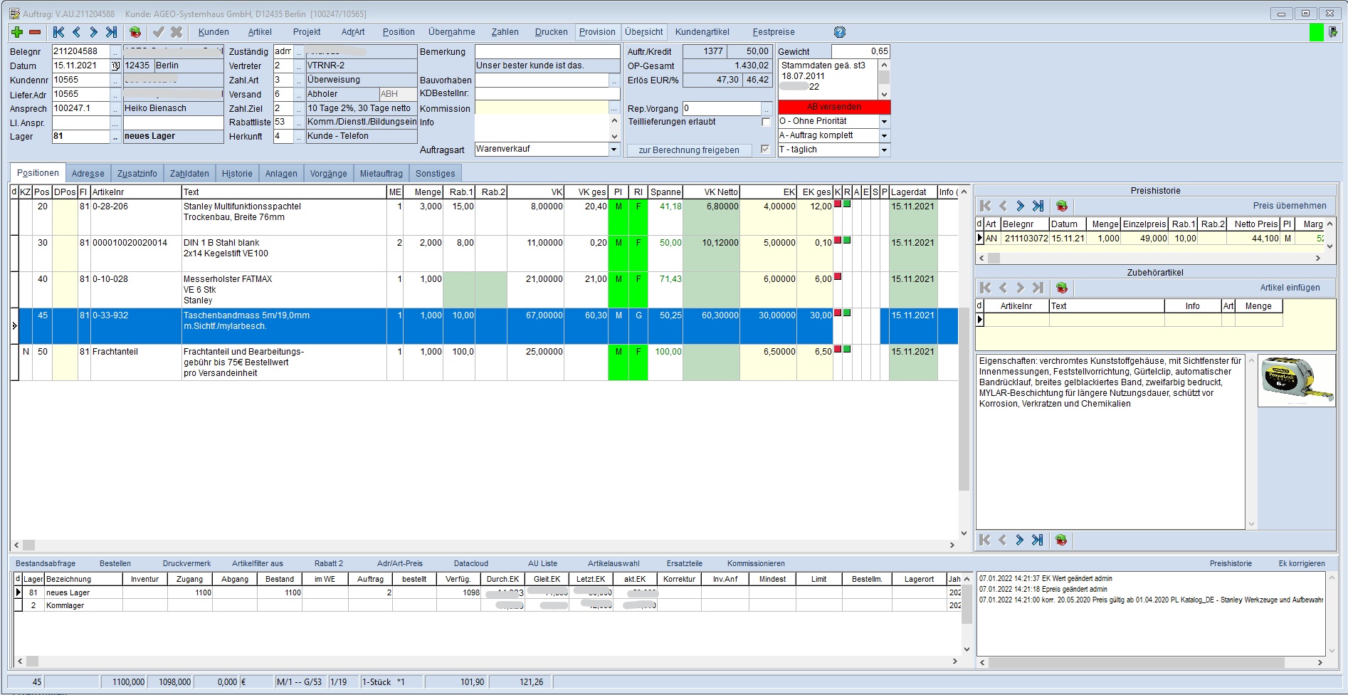 Aus einer anfangs geplanten einfachen Anpassung entwickelte sich eine Branchenlösung für den Werkzeug- und Schraubenhandel mit auftragsbezogenem Bestellwesen, Preispflege über Katalogimport, Auftragskommissionierung, Bestellschnittstellen etc.