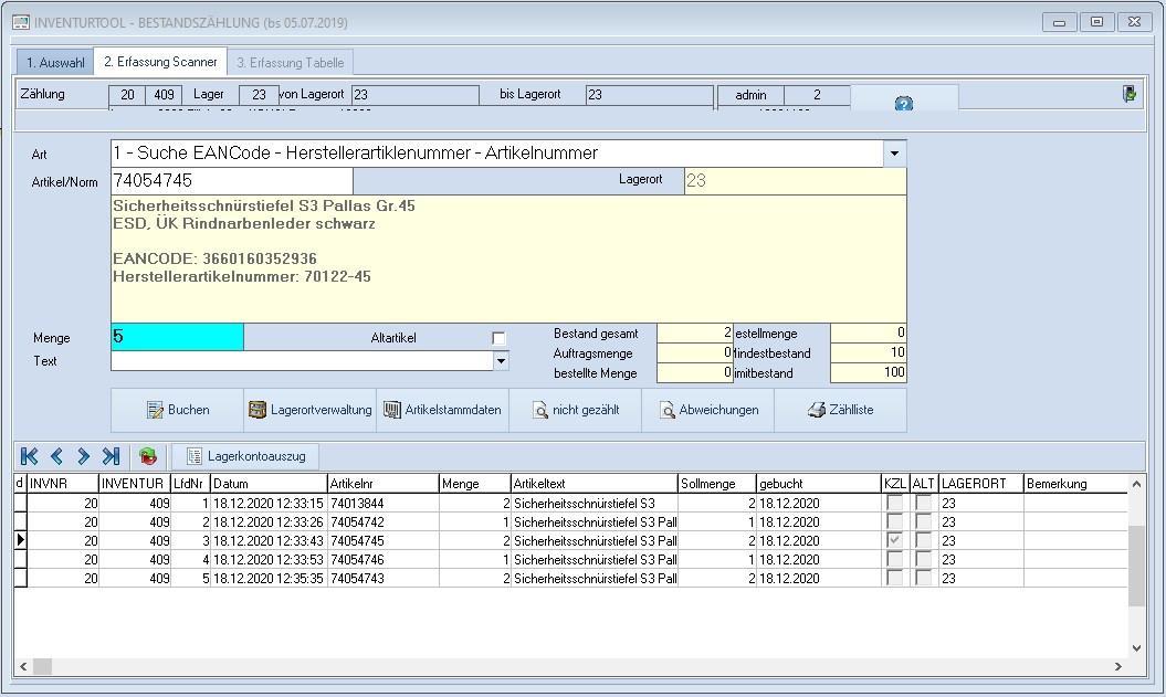 - Modul zur Bestandserfassung im laufenden Geschäft