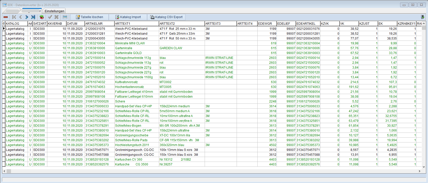 - Datentool z.B. zum Import von Artikel- und Preiskatalogen, der Pflege der EAN Codes und der saisonalen Optimierung der Bestellinformationen zur Ansteuerung des Bestellwesens