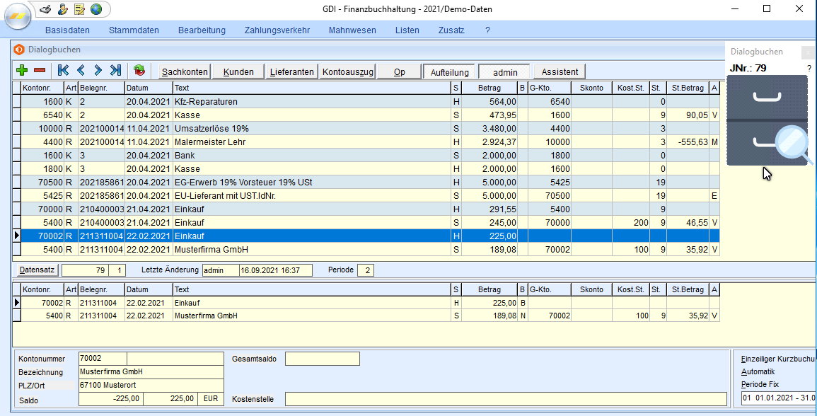 Ablage per Maus aus der GDI Finanzbuchhaltung
