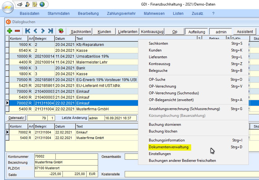 Die GDI Finanzbuchhaltung besitzt im Standard eine Verknüpfung zu einer externen Dokumentenverwaltung.