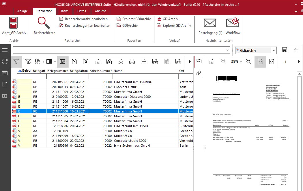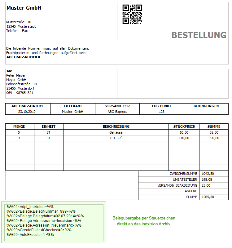 Als Beispiel können hier die selbst erzeugten Ausgangsbelege in Form von PDF aus GDI dienen, aber auch gescannte Dokumente, die z.B. mit einem Barcode versehen sind.