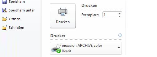Ein herausragendes Merkmal von inoxision ARCHIVE ist der enthaltene Windows-Archivdruckertreiber. Mit ihm können Sie Ausdrucke aus jeder Windows-Software archivieren – beispielsweise also die in einer Warenwirtschaft erstellten Ausgangsrechnungen oder in Word erstellten Geschäftsbriefe. In der Praxis drucken Sie das jeweilige Dokument nicht auf dem normalen Büro-Drucker aus, sondern wählen den inoxision-Archivdrucker – und schon ist das Dokument archiviert.