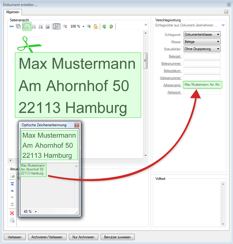Bereits im Standard ist in inoxision Enterprise Suite eine OCR-Texterkennung enthalten. Dies ermöglicht, lesbare Texte mittels der OCR-Scheren-Funktion auszulesen.