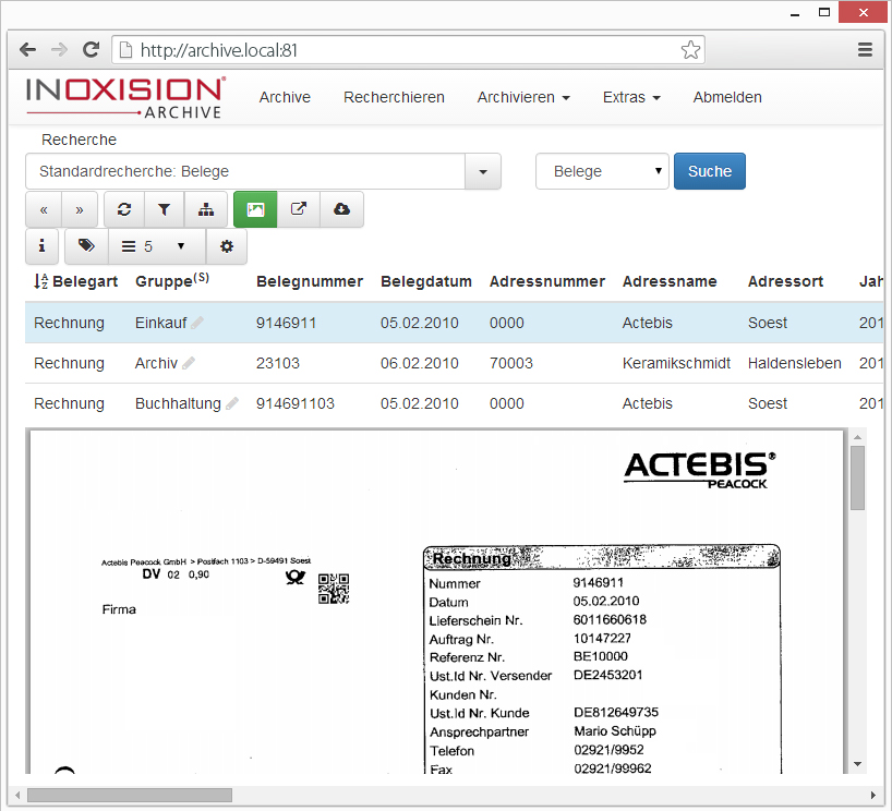 Mit dem inoxision ARCHIVE-Webclient, haben inoxision Nutzer (Clients) den sicheren und definierten Zugriff auf archivierte Dokumente, direkt über den Webbrowser.