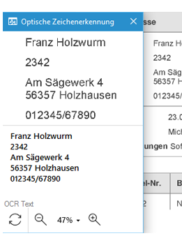 Mit einer OCR-Erkennung werden grafische Daten in Zeichen umgesetzt, z.B. die Belegnummer auf einer gescannten Eingangsrechnung. Während eine normale OCR-Erkennung hierbei nur einzelne Zeichen erkennt, ist bei der für inoxision ARCHIVE erhältlichen "Advanced OCR"-Erkennung ein Wortarchiv hinterlegt, welches die gescannten Zeichen auf Plausibilität vergleicht.