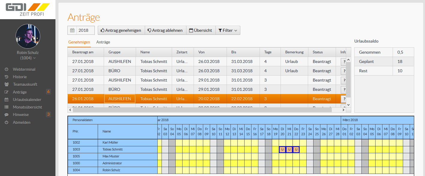- Urlaub: Genommen, Geplant, Beantragt und Resturlaub