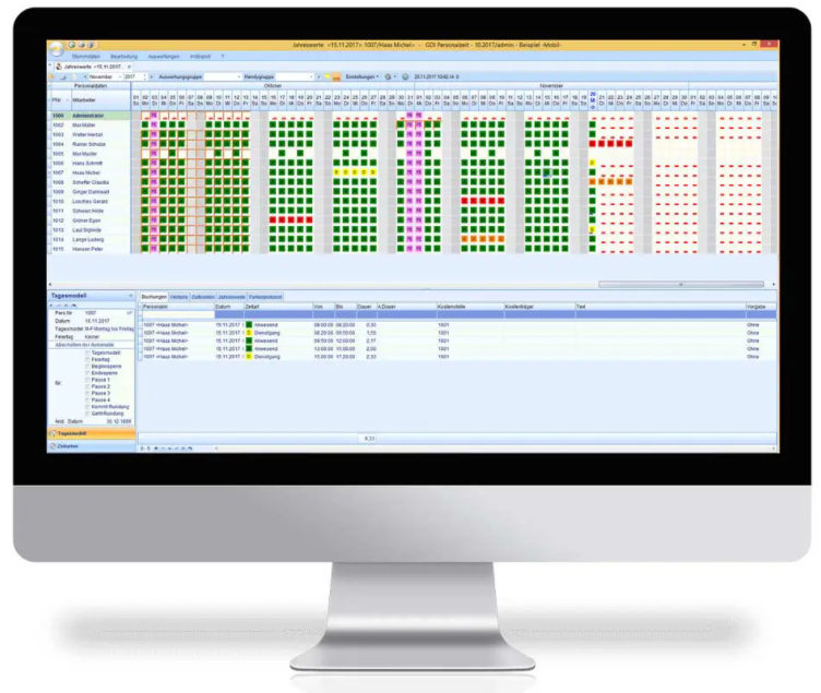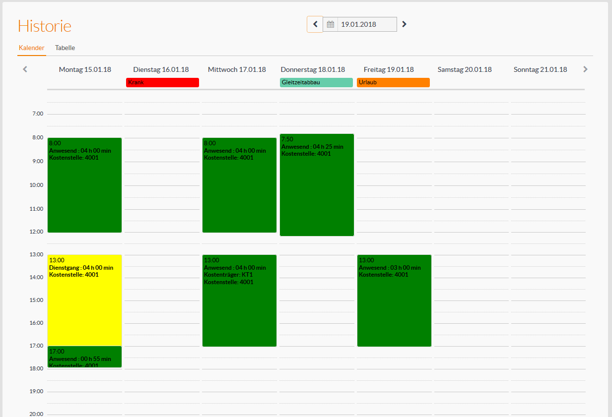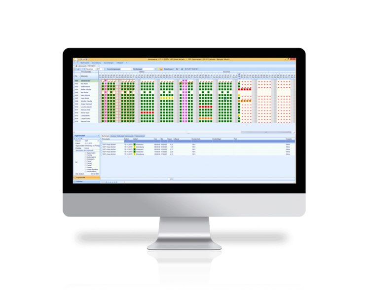 Sie geben Ihnen einfach alles: eine komplette Übersicht über alle Buchungen. Natürlich unabhängig vom Erfassungsweg. Ob Urlaub oder sonstige Abwesenheitszeiten. In schnell erfassbaren Farben.
