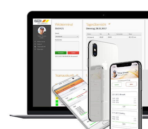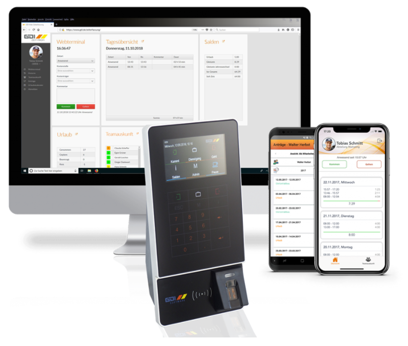 Das GDI Webterminal kommuniziert über den Web-Browser von Ihrem Endgerät direkt mit Ihrem GDI AppServer und erhält alle notwendigen Informationen aus dem Live-System Ihrer GDI Zeit. Hier besteht nicht nur die Möglichkeit Kommen- und Gehen-Buchung durchzuführen, sondern im Webterminal erhalten Mitarbeiter und Vorgesetzte zusätzliche imformationen und haben dadurch alles im Blick.