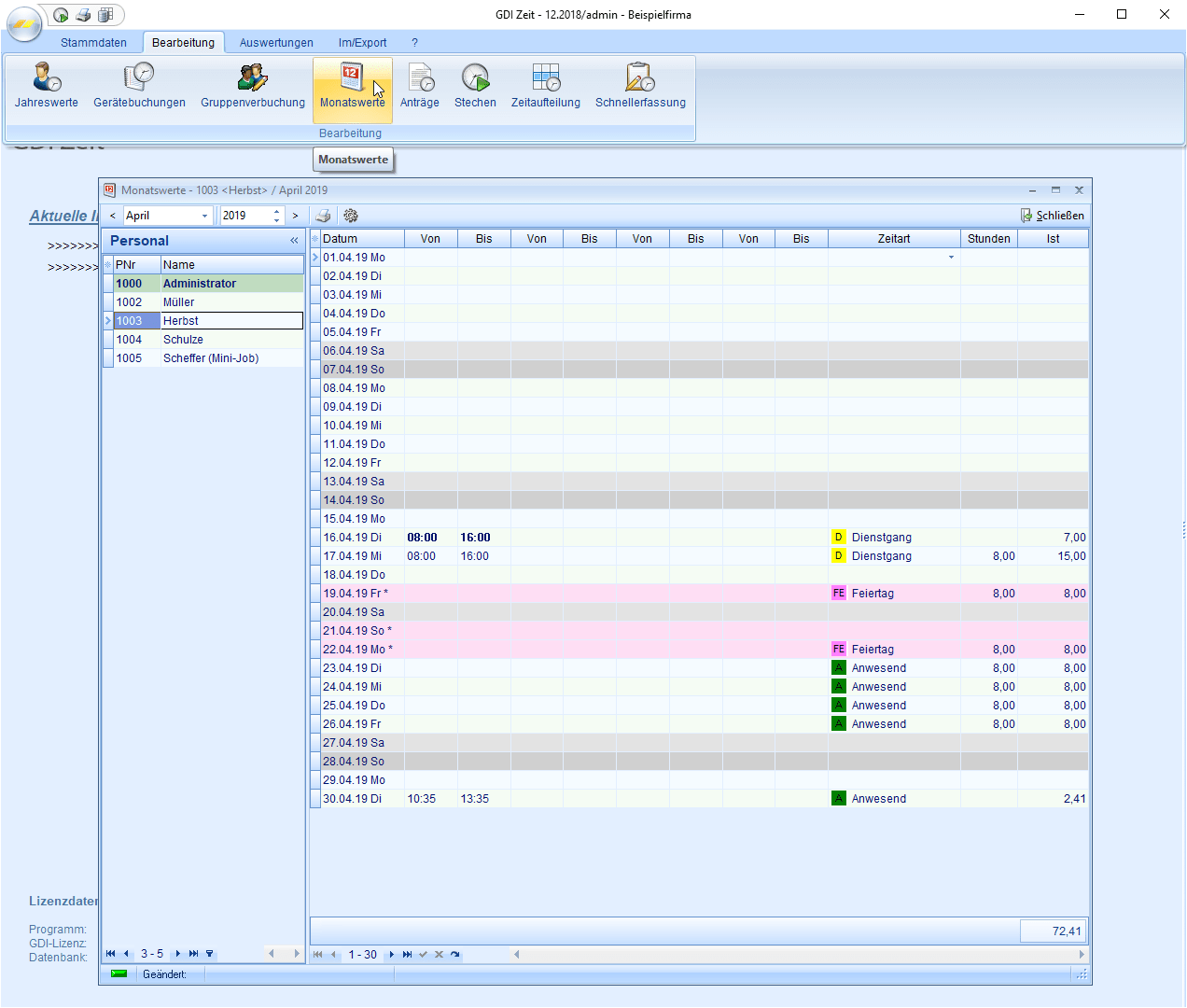 - Verwaltung von Gleitzeitkonten