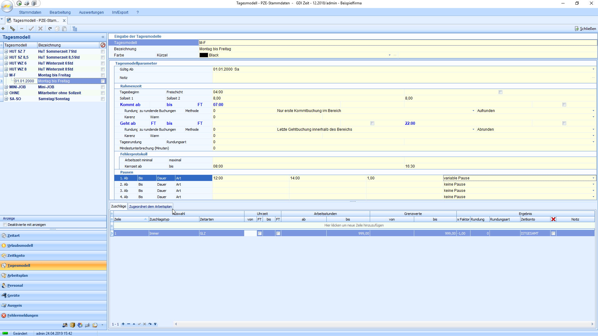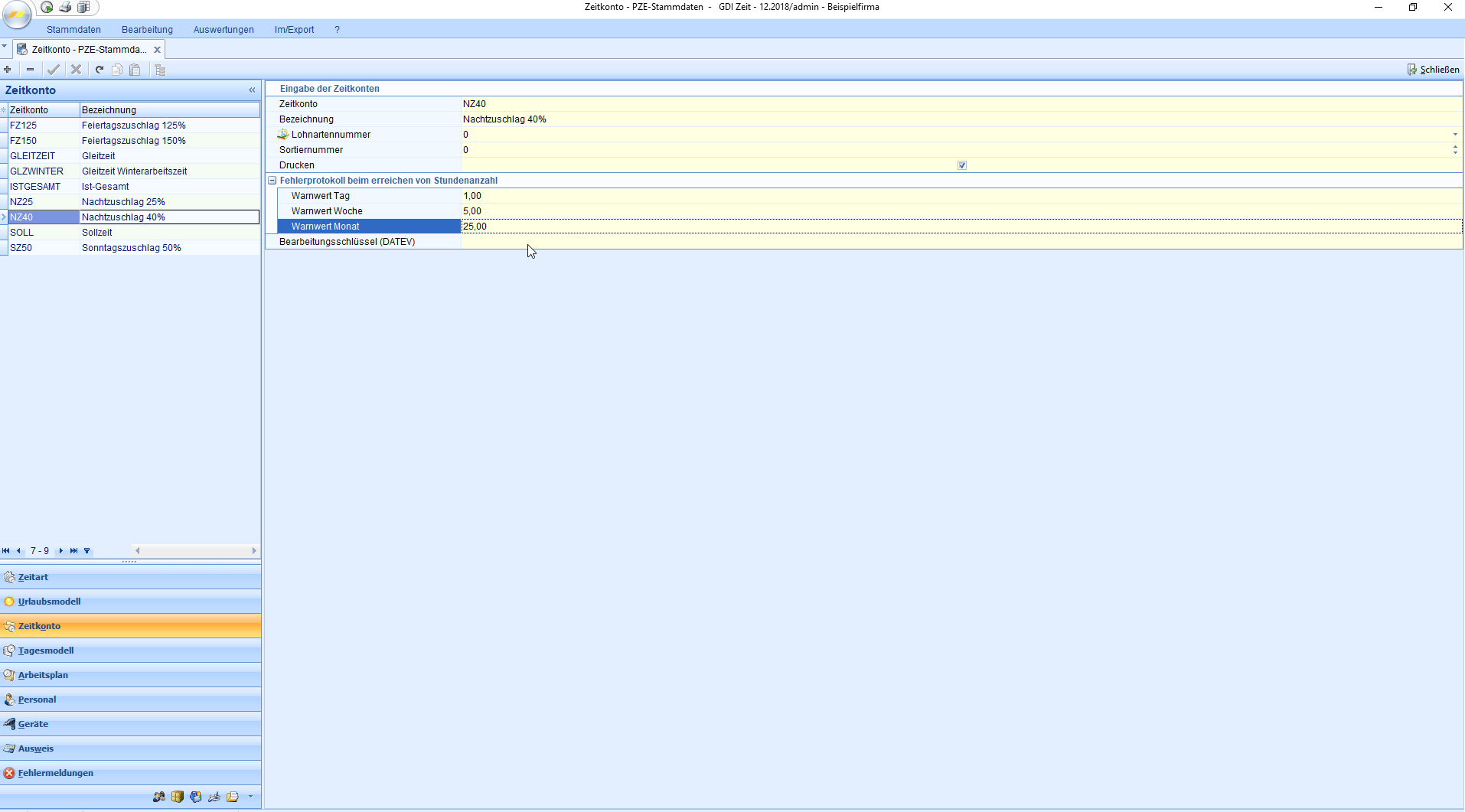 - Verwaltung von Zeitkonten
