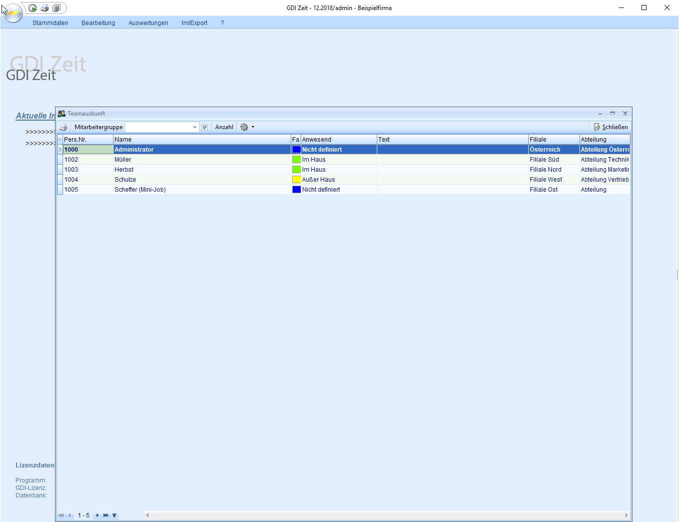 - welche Mitarbeiter befinden sich im Haus