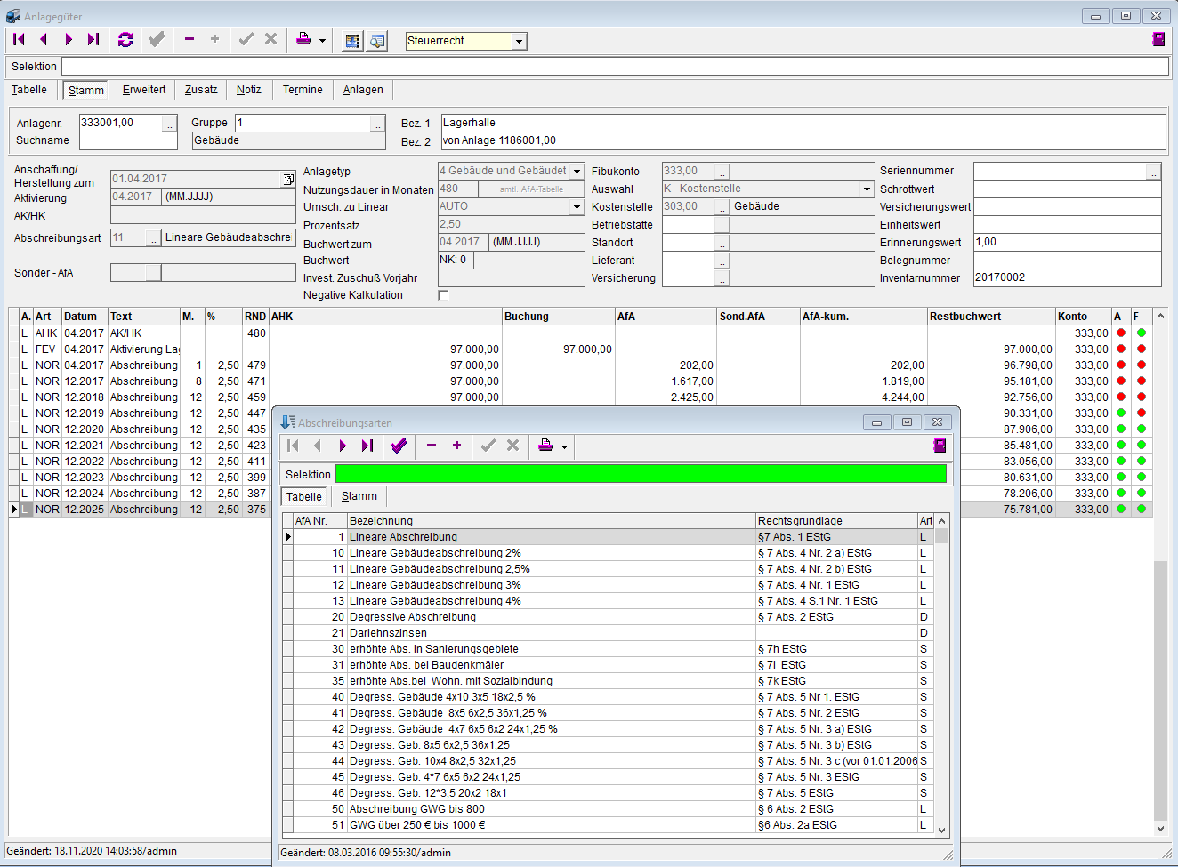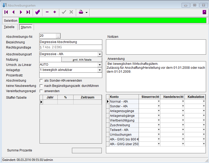 - Alle gesetzlichen Abschreibungsarten zur Auswahl