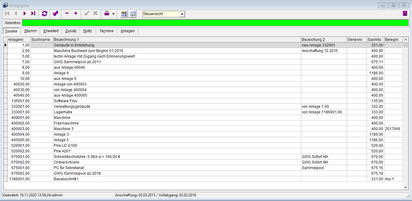 - Wahlweise automatische oder manuelle Nummerierung der Anlagegüter