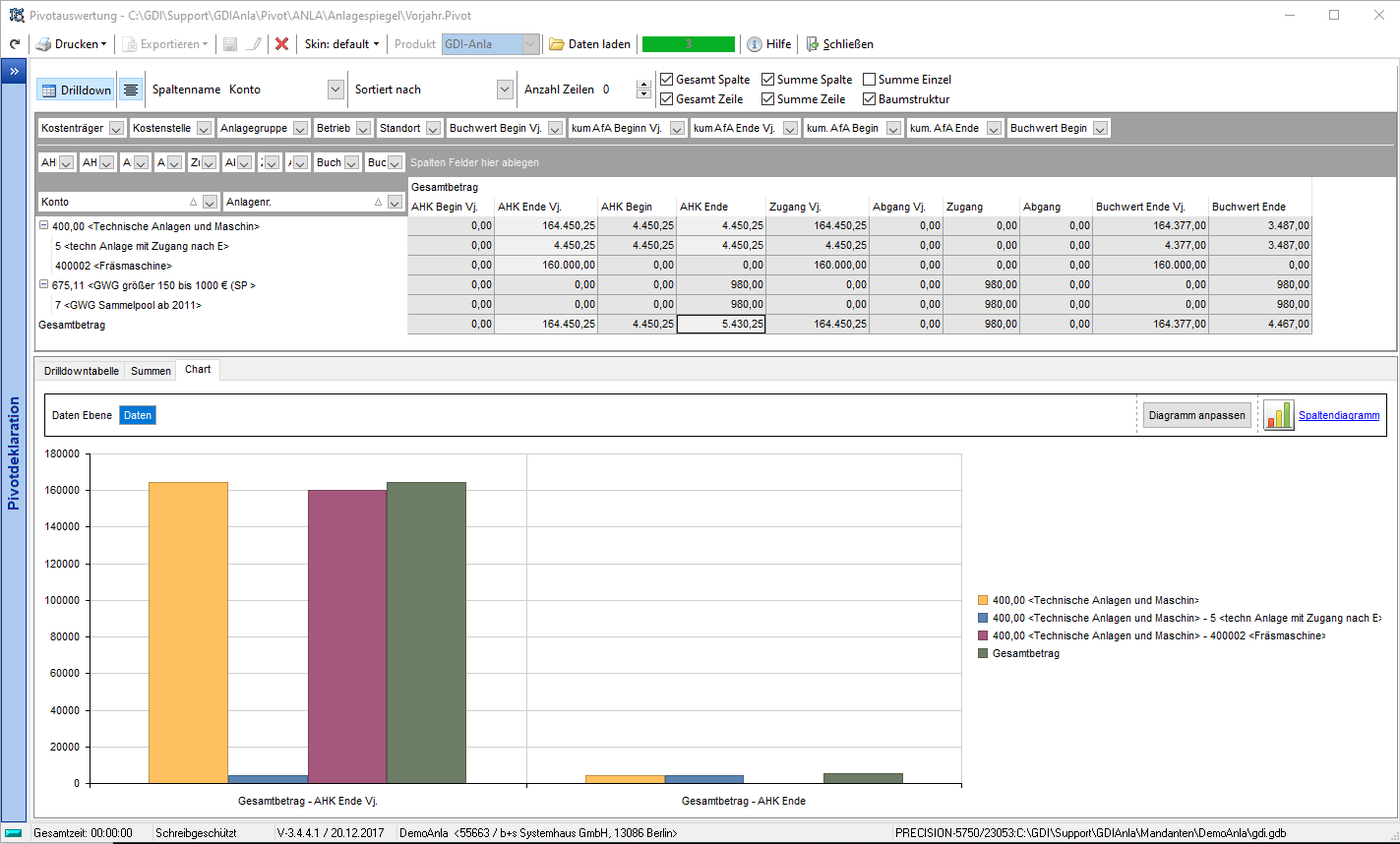 Vom Kleinen ins Große – Alle Daten, von der Telefonanlage bis zur Produktionsanlage, stehen Ihnen jederzeit zur Verfügung. Damit wird Ihnen auf die gesamte Laufzeit höchste Transparenz gewährleistet, mit aktuellen Werten für die Lebenslaufakte, Anlagevermögen, Anlagespiegel oder Kontoauszüge. Genießen Sie die optimierten Reporting Funktionen von GDI Anlagenbuchhaltung. Daten, wie für Lebenslaufakte, Übersicht über das Anlagevermögen, Anlagespiegel oder Kontoauszüge, lassen sich individuell nach Ihren Bedürfnissen aufbereiten, auswerten, grafisch darstellen und für firmeninterne Präsentationen exportieren.